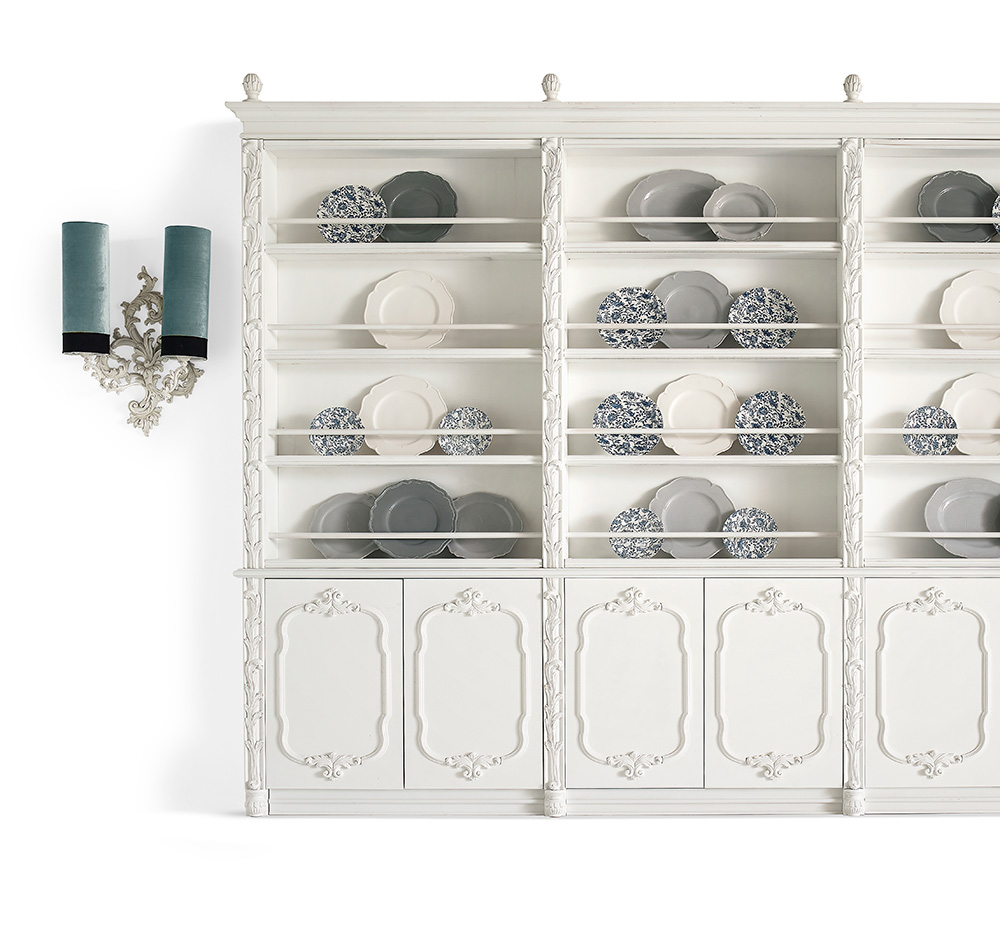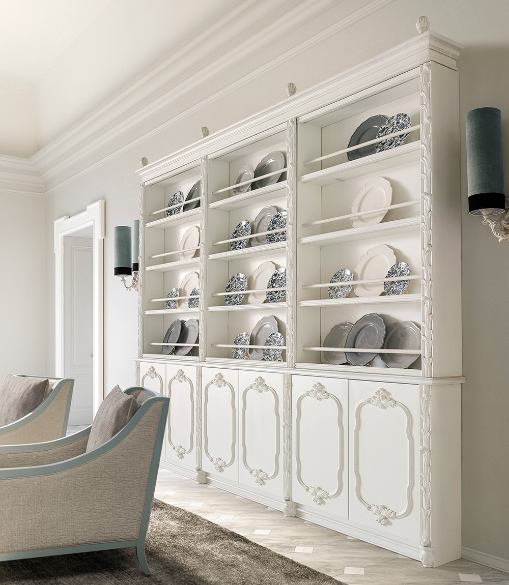 Of a slightly more contemporary reference – even though still traditional and classic – the plate display cabinet boasts an optical-white finish. The visual impact is majestic and extremely elegant, perfect for an interior both of a classic or contemporary note.